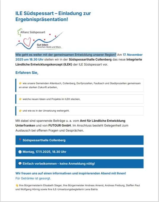 ILE Südspessart 3 Einladung zur Ergebnispräsentation!