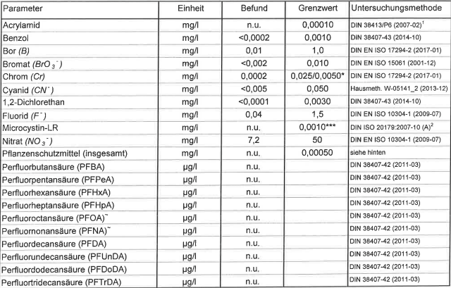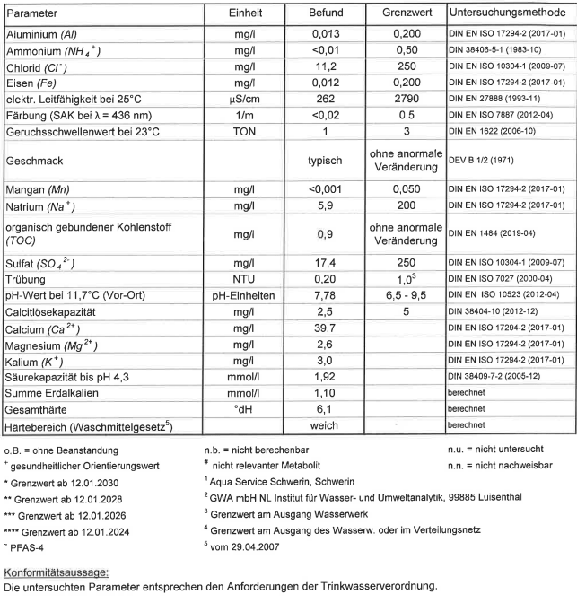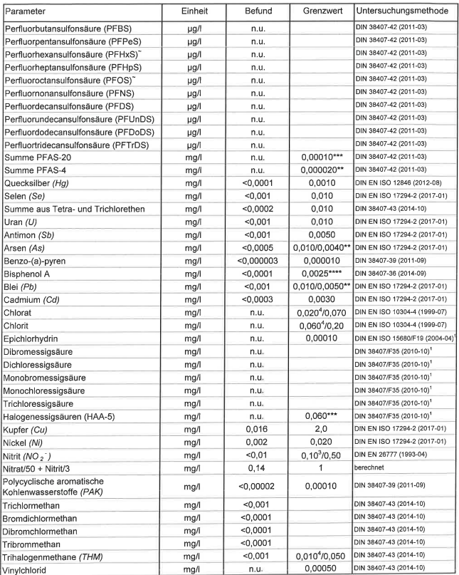 Befunde der Trinkwasseruntersuchung vom 14.04.2025
